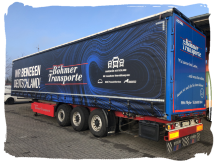 Zum Beispiel Schiebespannplanen, Dachplanen, Voll- bzw. Hochplanen sowie Rolldachplanen und Kipperplanen für Auflieger, Anhänger oder Motorwagen. - PKW - Anhängerplanen